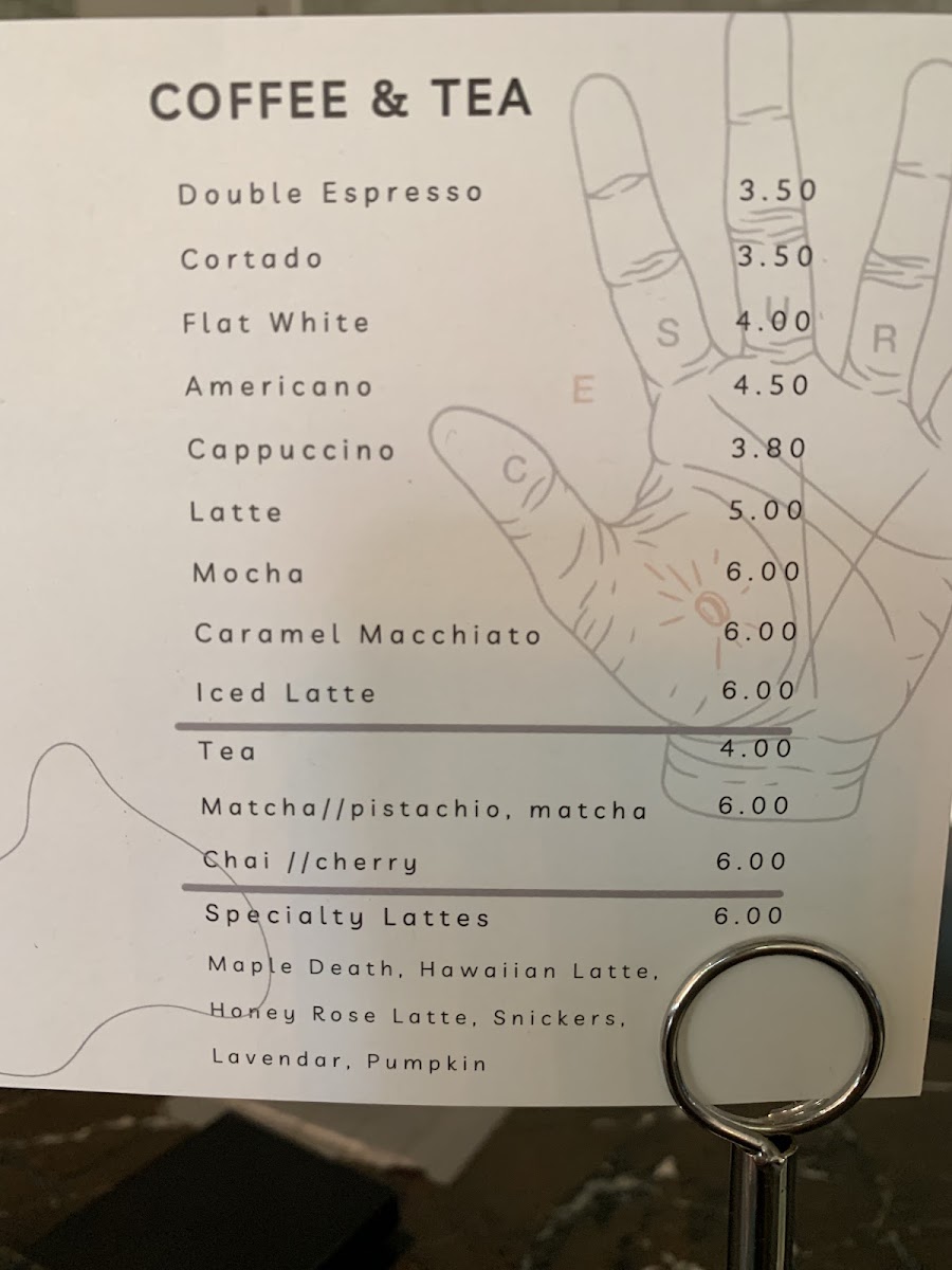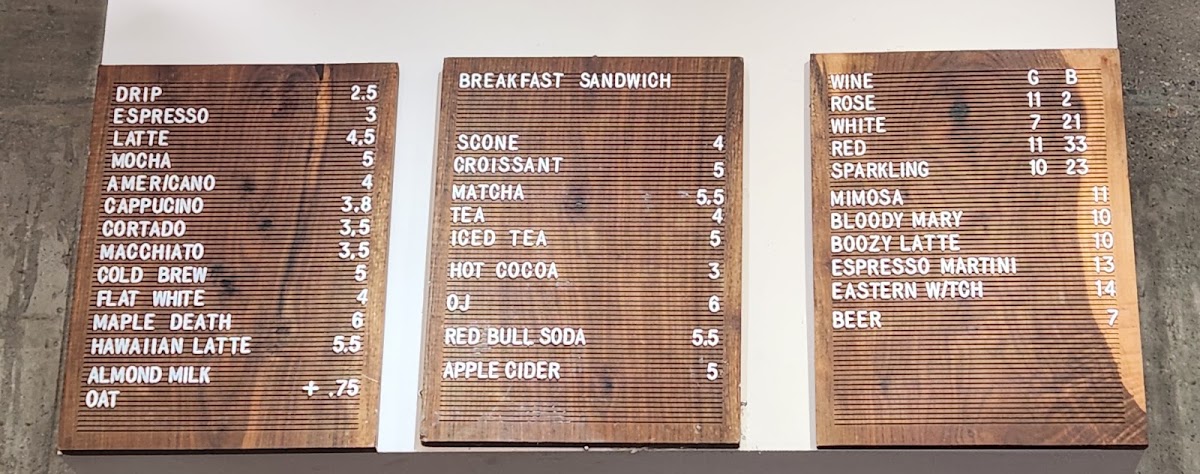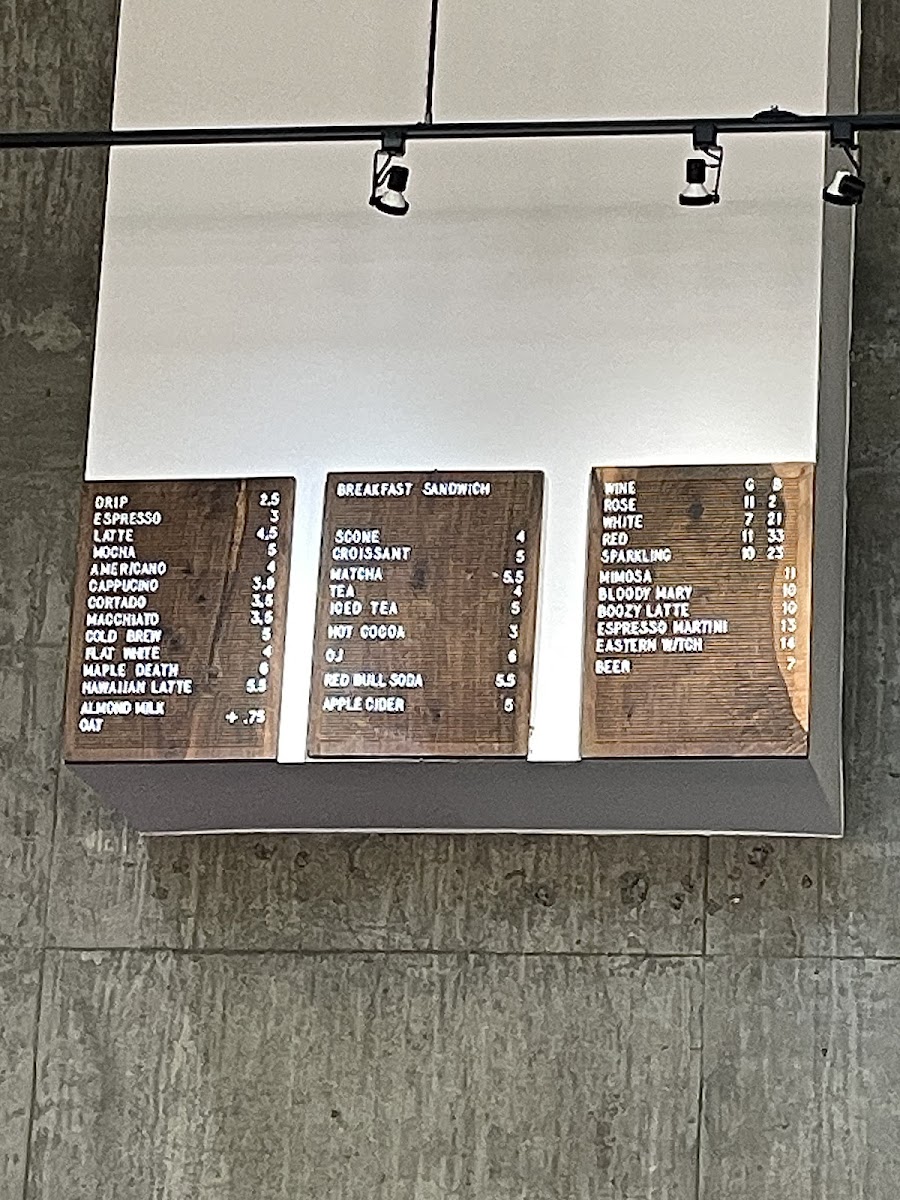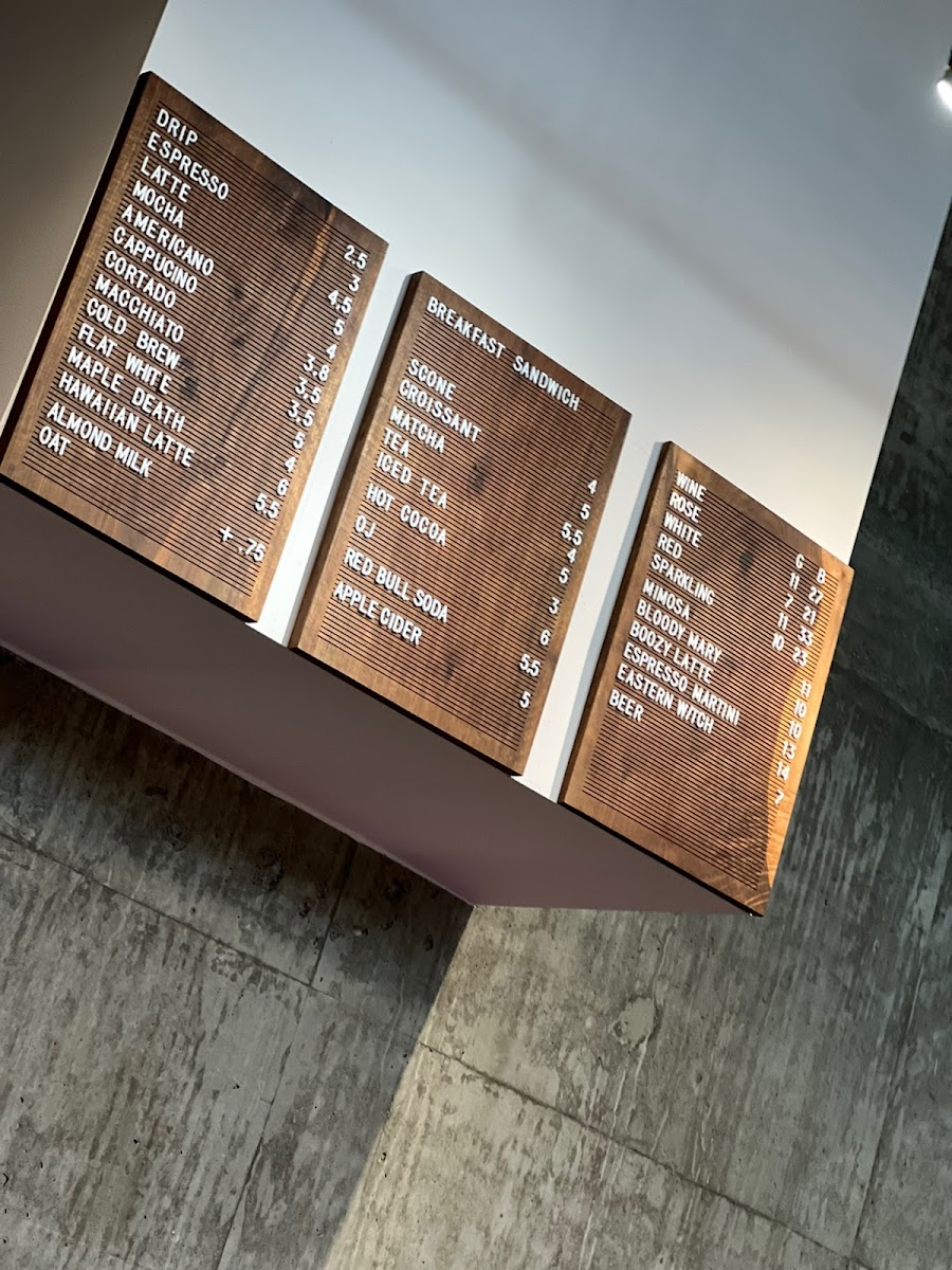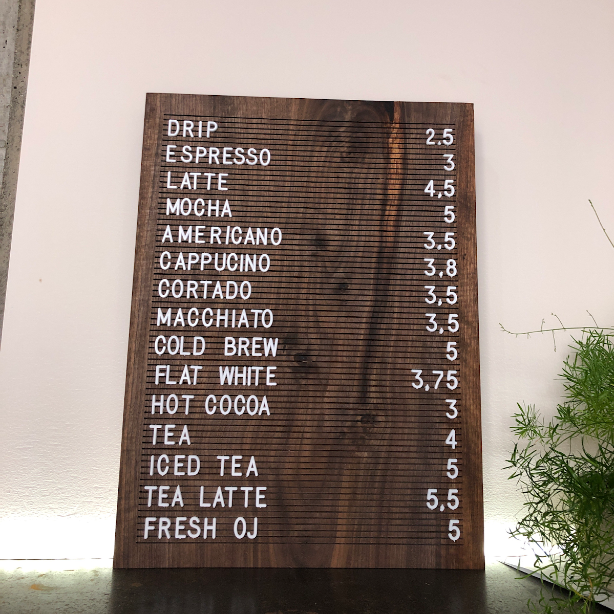 - Coffee favorites: Latte, Drip Coffee, Flat White, Cold Brew